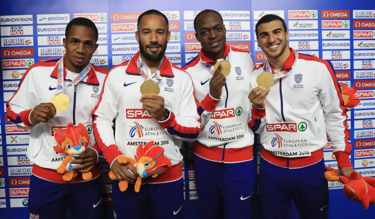 James Ellington con su medalla de oro tras ganar el relevo 4x100m durante el Campeonato Europeo de 2016/Getty Images
