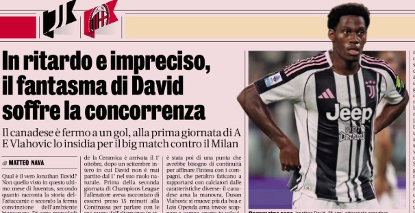 La edición impresa del viernes de Gazzetta Dello Sport analizó las actuaciones de David, sugiriendo que el canadiense está luchando para vincularse con sus compañeros de equipo, principalmente porque aún no se ha ganado un lugar inicial en el Estadio Allianz.