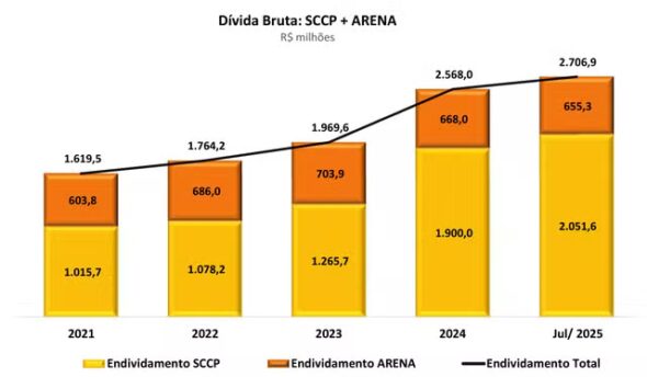 El club social sigue acumulando pérdidas. Hasta julio, el resultado operativo fue negativo, de R$ 26,5 millones. La dirección de fútbol presentó un superávit de R$ 13 millones. Esta diferencia demuestra el contraste entre rendimiento deportivo y gestión administrativa. Incluso con ajustes ocasionales, los gastos fijos siguen siendo elevados.
