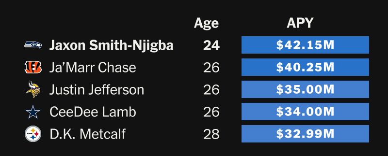 Smith-Njigba, de 24 años, representó una de las dos grandes extensiones en la lista de tareas pendientes de los Seahawks esta temporada baja, con el esquinero Devon Witherspoon como el otro.