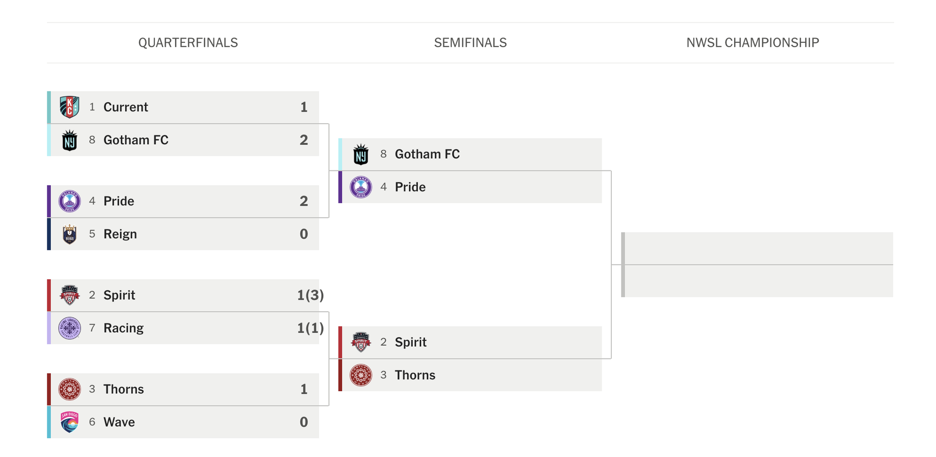 Ahora, si alguien quiere discutir cuál es la mejor sorpresa en los playoffs de todos los tiempos (el partido Gotham-KC de este fin de semana o la semifinal de 2016 entre los Thorns y el Western New York Flash), ya saben dónde encontrarme.